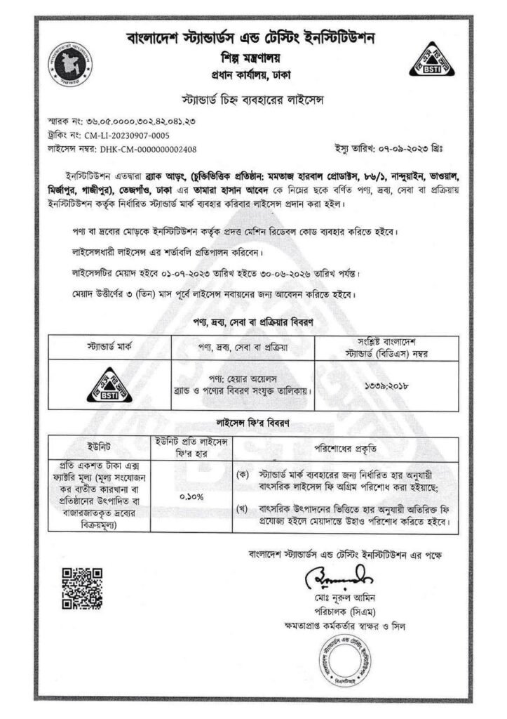 বাংলাদেশ সায়েন্স ল্যাব থেকে অনুমোদিত করা আমাদের সকল প্রোডাক্ট